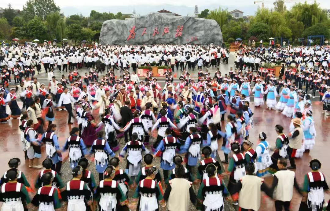 ▲9月25日,在云南省普洱市宁洱哈尼族彝族自治县,当地群众欢聚在民族团结园里。新华社记者 王静颐 摄